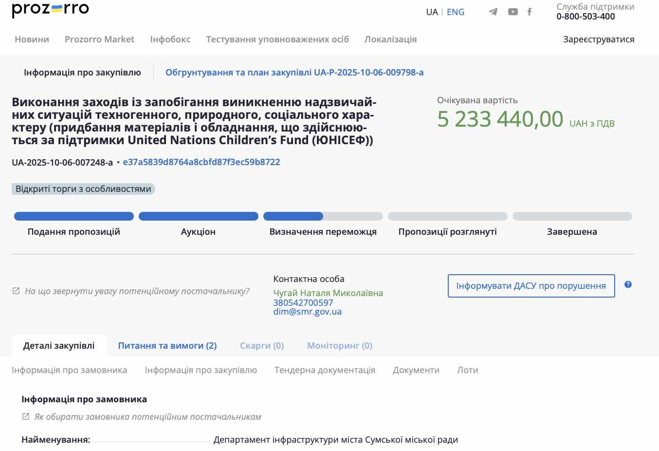 Тендер оголошено 6 жовтня 2025 року, кінцевий строк подання пропозицій — 14 жовтня 2025 року. Вибір переможця відбуватиметься за критерієм ціни (100%).