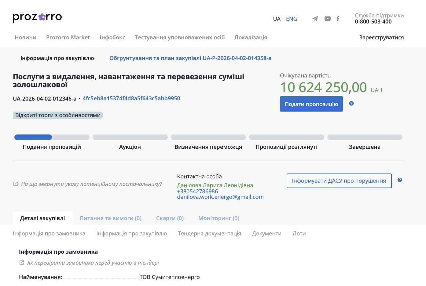 Замовник готовий щедро розщедритися. Очікувана вартість цього «золотого» (чи то пак золошлакового) контракту складає солідні 10 624 250 гривень!