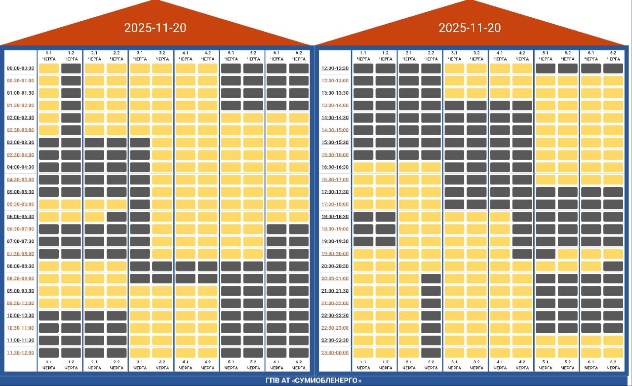 Жителі області можуть готувати чайники, павербанки й нерви: 20 листопада Сумщина переходить на суворий режим погодинних відключень — за командою НЕК «Укренерго». Графік традиційно виглядає так, ніби його складали між трьома нарадами та двома аваріями: