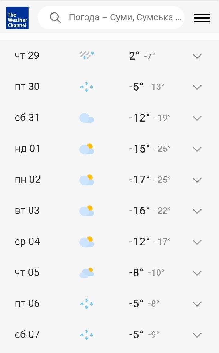 Сумщину скує лютий мороз: синоптики попереджають про похолодання до –25°