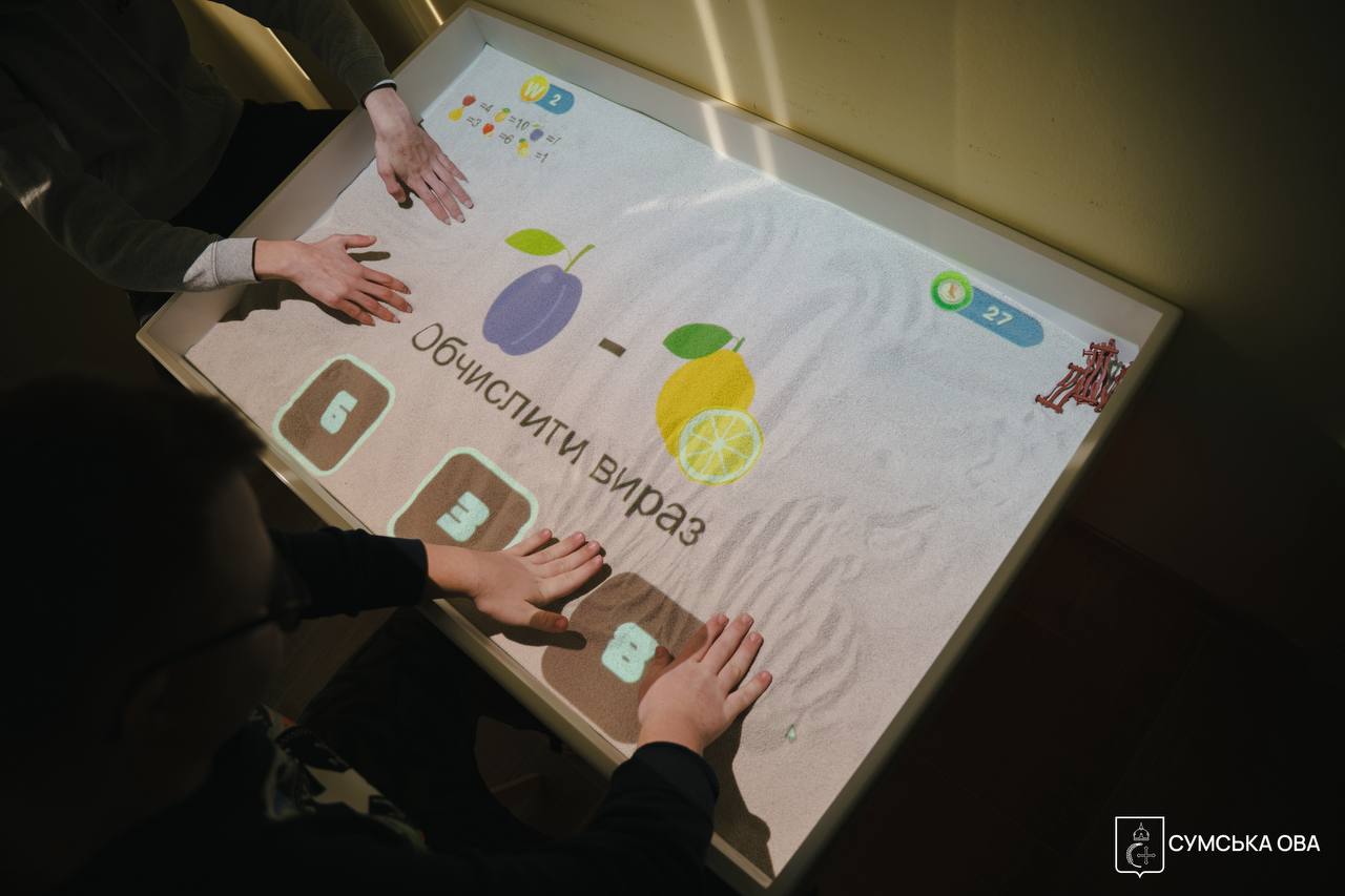 У Сумському обласному центрі комплексної реабілітації вже понад місяць діти займаються з новою інтерактивною пісочницею. Це сучасний комплекс для занять, який допомагає розвивати моторику, координацію та увагу через гру. Дітям він уже дуже полюбився.