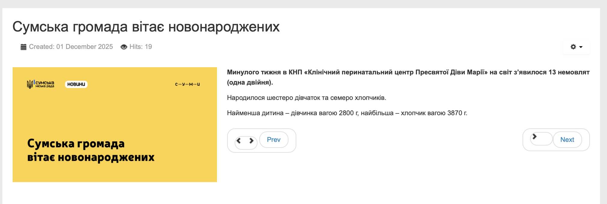 Учора, 1 грудня 2025 року, офіційний ресурс Сумської міської ради спробував додати позитиву, прозвітувавши: “Минулого тижня на світ з’явилося 13 немовлят”. Влада радіє, вітає батьків, звітує про вагу хлопчиків та дівчаток. Але якщо відкинути емоції та взяти в руки калькулятор, стає моторошно.