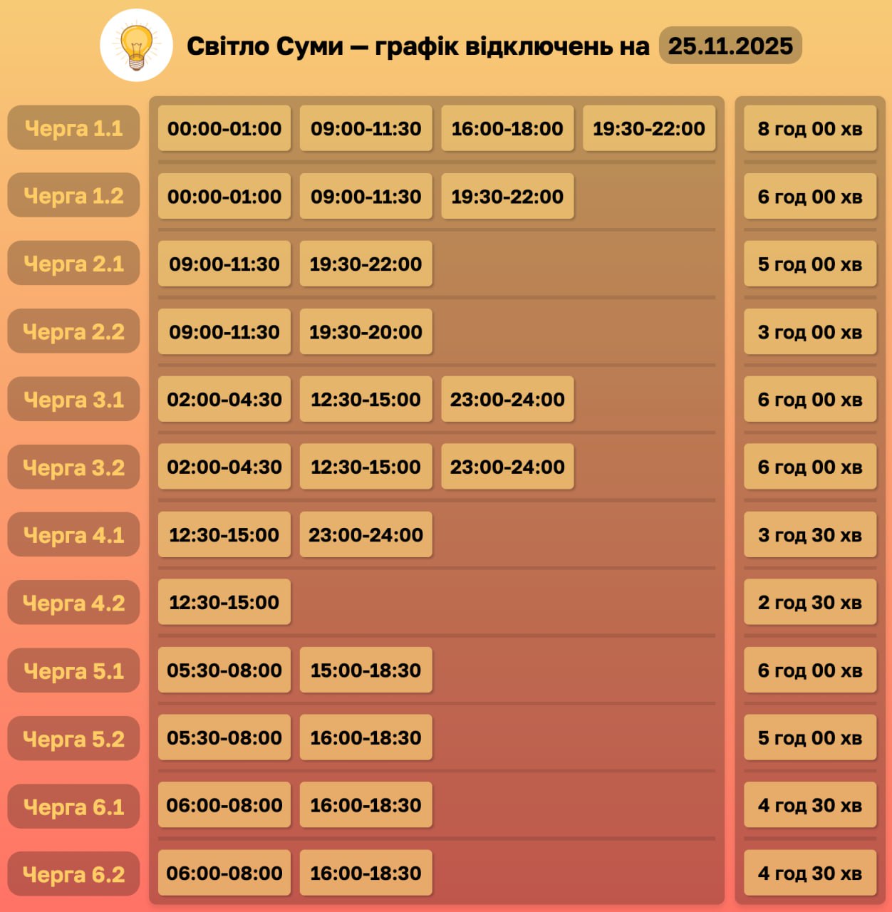 «Світло буде — але не всім і не завжди»: Сумчан попередили про нові годинні відключення 25 листопада