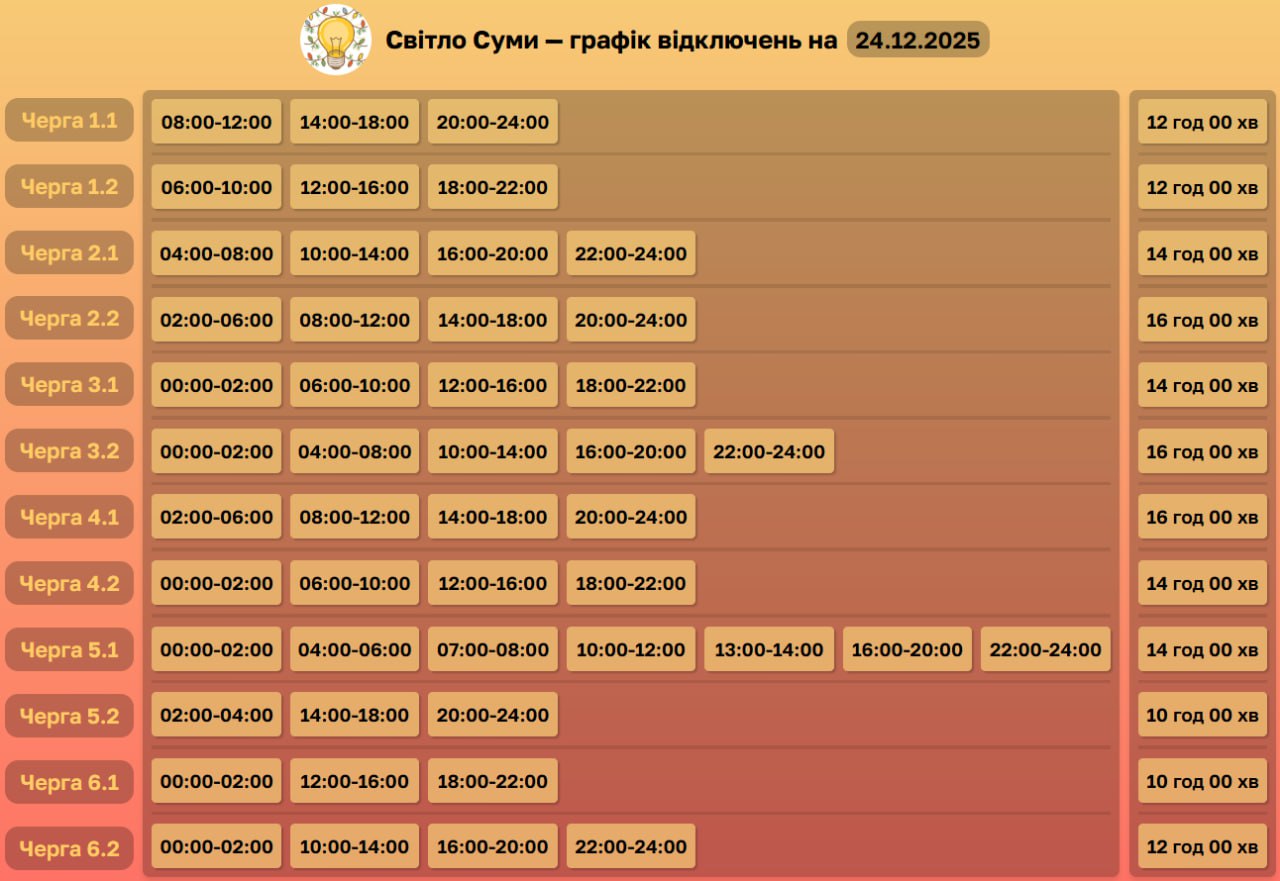 Світловий антирекорд Сумщини: графіки переписали — сидітимемо в темряві понад 16 годин (і це ще не межа)