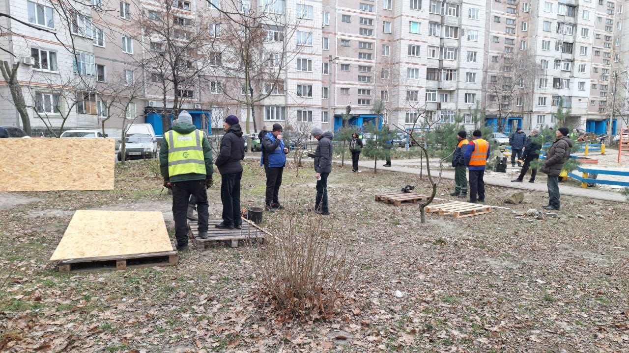 Працюють фахівці комунальних підприємств “Зеленбуд”, “Міськсвітло”, “Спецкомбінат” – здійснюють розпилювання плити та забиття вікон.