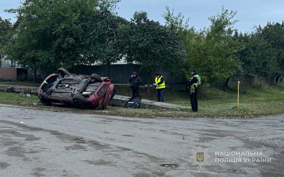 Попередньо встановлено, що 23-річний водій автомобіля Hyundai i20, рухаючись по вул. Захисників України, не впорався з керуванням, виїхав за межі проїжджої частини та допустив наїзд на бетонні плити, після чого автомобіль перекинувся.