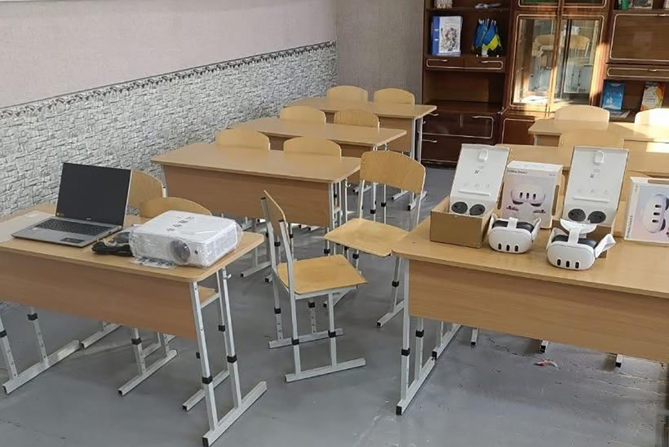Тепер учні зможуть користуватися інтерактивним комплектом Intboard, сучасним ноутбуком ASUS Vivobook та навіть окулярами віртуальної реальності Oculus Meta Quest! А ще в класі з’являться стенди з пожежної та мінної безпеки, а також стенди з вибухонебезпечними предметами.