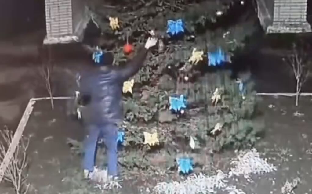 У Конотопі невідомий чоловік серед ночі обікрав шкільну ялинку, поцупивши дитячі поробки