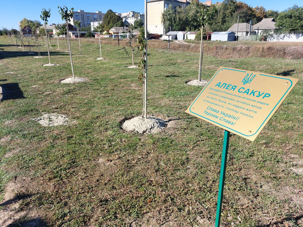 У Роменській громаді Алея сакур поповнилася новими деревами на честь Героїв України
