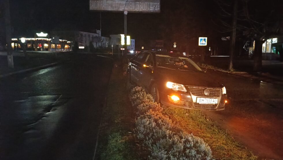 Сьогодні, 15 листопада, у Шостці на вулиці Знаменській сталася дорожньо-транспортна пригода: автомобіль Volkswagen виїхав на клумбу, що розділяє смуги зустрічного руху.