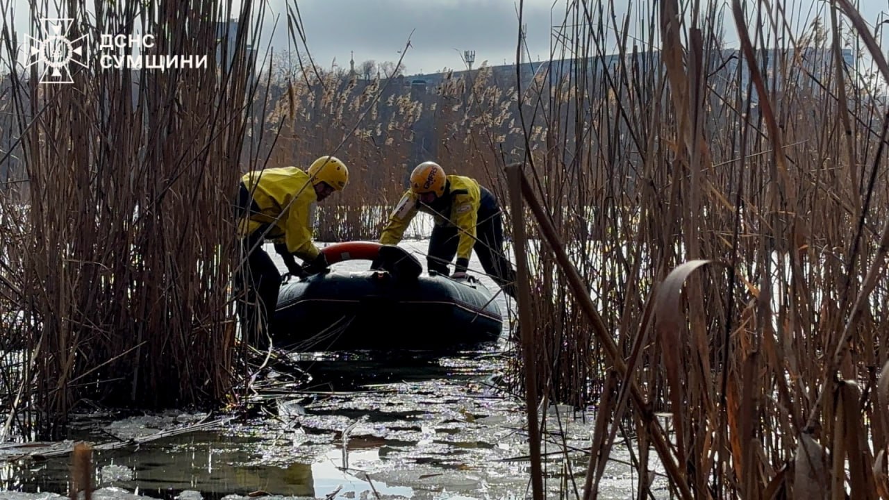 У м. Суми посеред озера Чеха чоловік провалився під лід.