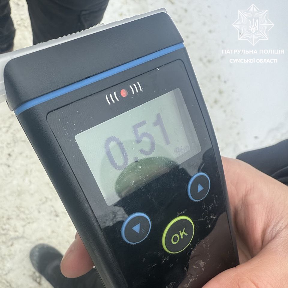Під час перевірки документів поліцейські встановили, що 23-річний водій позбавлений права керування. Протягом року він уже притягувався до відповідальності за керування у стані сп’яніння. Під час спілкування інспектори помітили у чоловіка ознаки сп’яніння. Огляд на місці зупинки це підтвердив — прилад Драгер показав 0,51 проміле алкоголю. Крім того, водій не мав чинного страхового поліса.