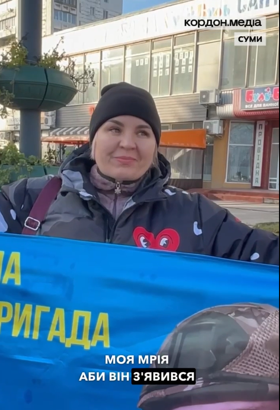 Також біля монітору зібралися родини безвісти зниклих та полонених військових — вони провели акцію підтримки, щоб привернути увагу містян та наголосити на поверненні їх рідних додому.