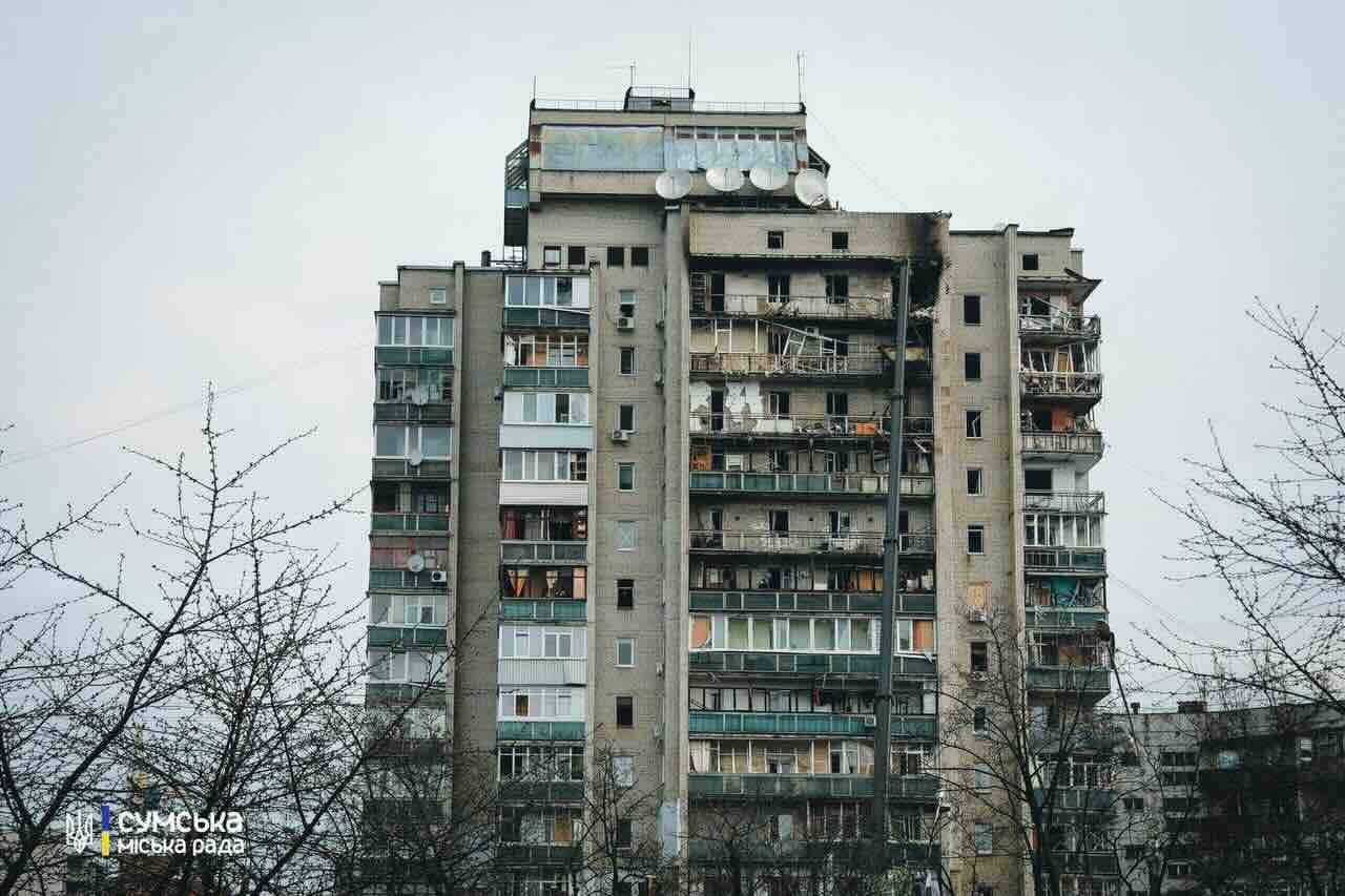 У Сумах відселили людей через аварійну багатоповерхівку після ворожого удару