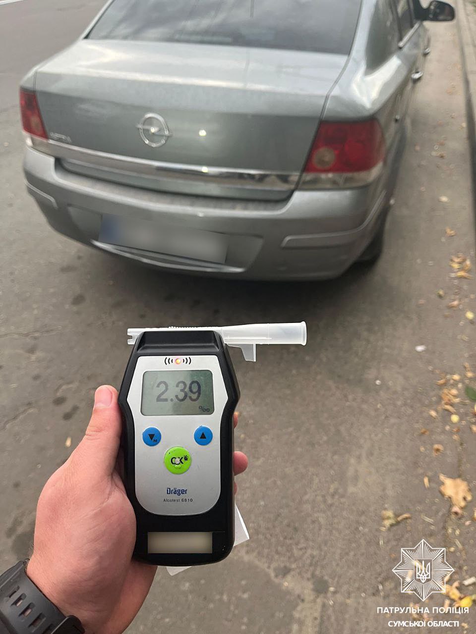 У Сумах водій Opel Astra їздив вщент п’яним: алкоголь зашкалював у 12 разів