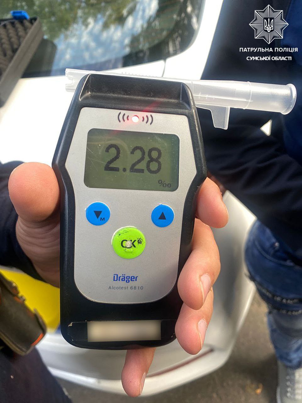 Під час оформлення адмінматеріалів у 49-річного керманича інспектори виявили ознаки сп’яніння. Чоловік пройшов огляд на визначення стану сп’яніння на місці зупинки. Прилад Драгер показав позитивний результат — 2, 28 проміле алкоголю. Це в понад 11 разів перевищує допустиму норму!