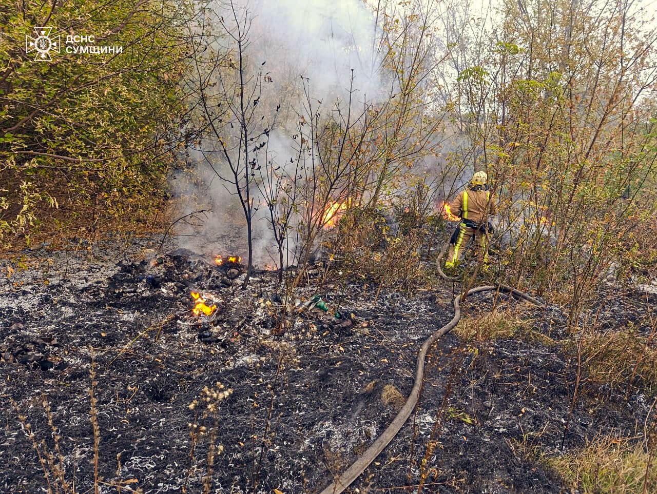 28 вересня підрозділи ДСНС двічі приборкували загоряння на відкритих територіях в Сумському районі.