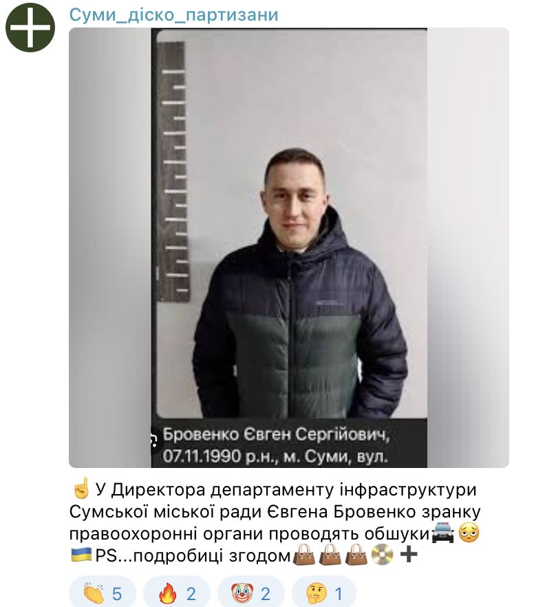 Ця подія — не просто черговий візит до чиновника. Євген Бровенко вважається креатурою та представником команди нинішнього очільника міста — в.о. міського голови Артема Кобзаря. Саме тому ранкові “маски-шоу” у профільному департаменті в черговий раз доводять що у Сумах просто відсутнє професійне чесне управління.