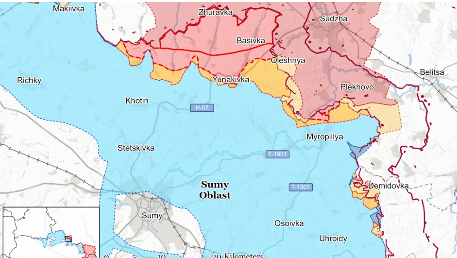 Як повідомили в ISW, на підставі геолокованих кадрів, опублікованих 6 жовтня, встановлено, що українські війська нещодавно просунулися в центральній частині Юнаківки (на північний схід від міста Суми).