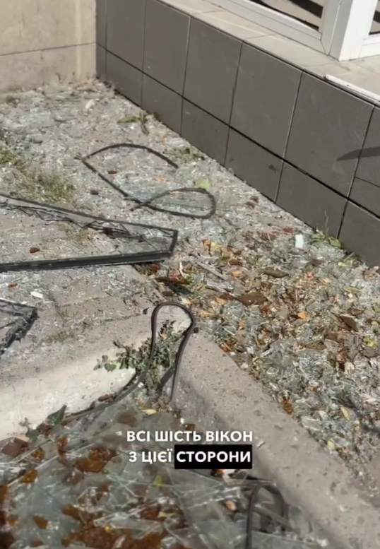 Після атаки на місто сьогодні вночі тут вилетіли всі вікна. Всередині все було засипане уламками, пошкоджені двоє дверей.