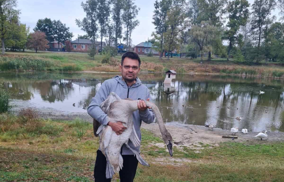 Молодого лебедя, який потребував допомоги, врятував на трасі Охтирка–Харків житель Харкова В’ячеслав Діденко.