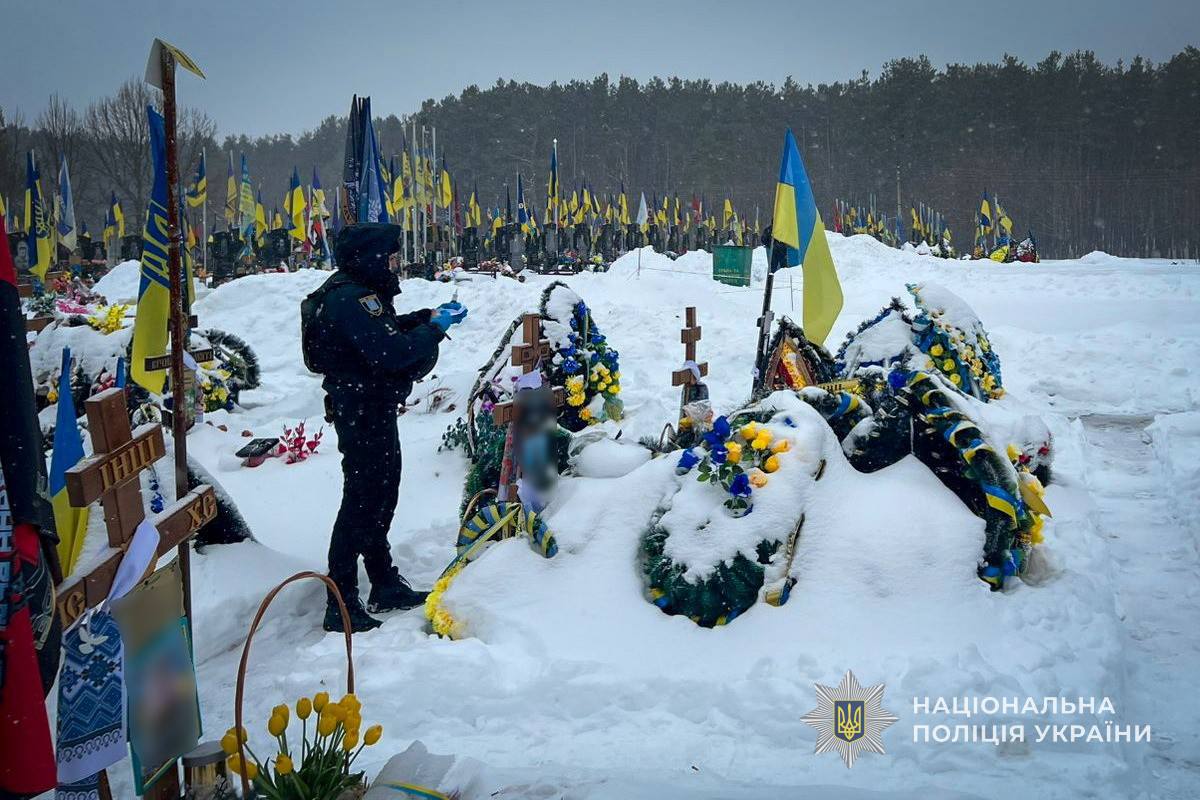 Наразі слідчі вже повідомили чоловіку про підозру за ч. 2 ст. 297 КК України — (наруга над могилою) Слідство триває.