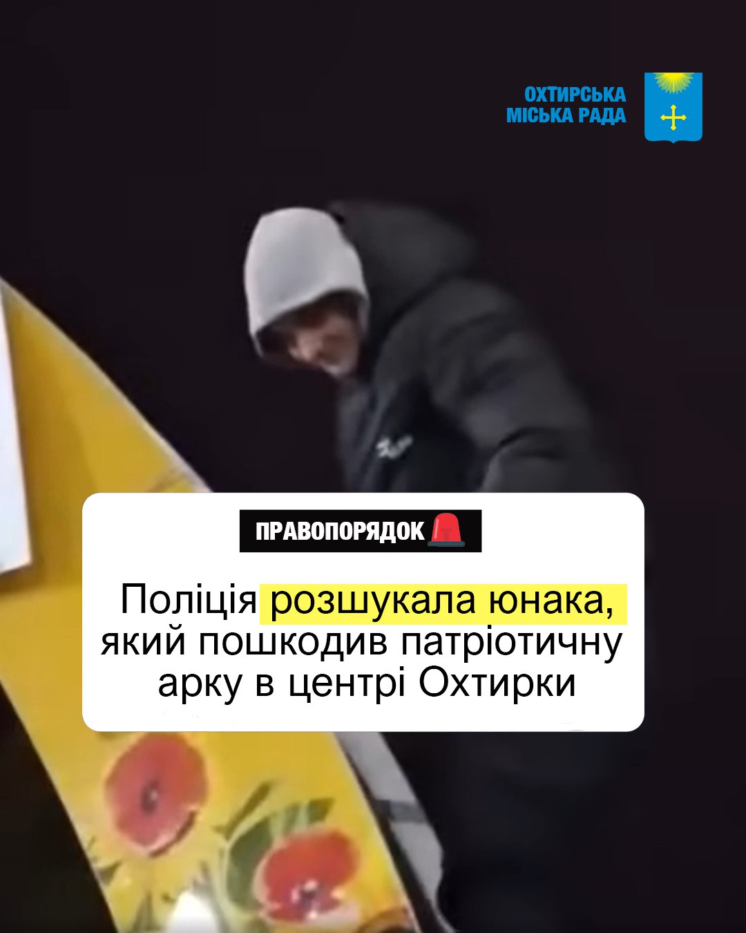 Випендрився перед дівчатами — в Охтирці розшукали хулігана, який зламав патріотичну арку