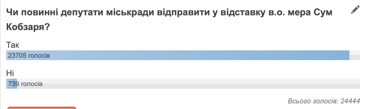 - ⛔ ЗА відставку Кобзаря: 23 705 людей. Це 97% тих, хто взяв участь в опитуванні.