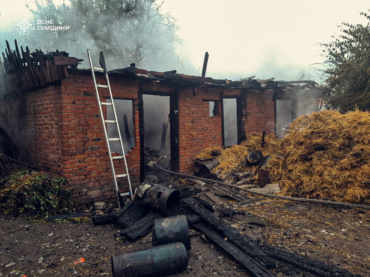 У результаті влучання вранці 3 жовтня загорілася будівля господарського призначення.