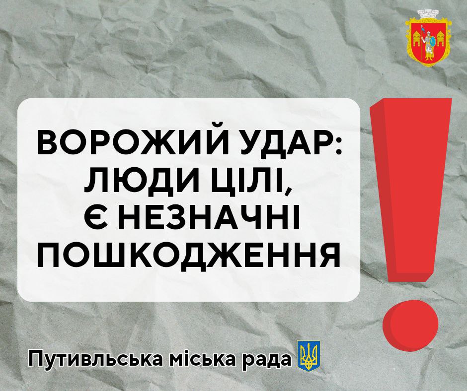 Сьогодні по обіді ворог здійснив атаку на Путивль. Як повідомив міський голова Костянтин Гаврильчук, постраждалих серед населення немає.