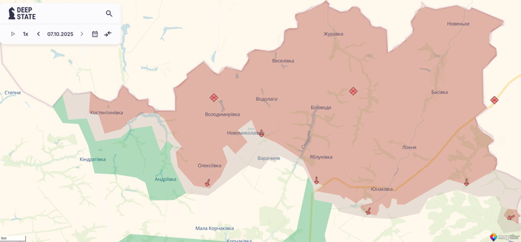 За даними Deep State, червона зона на цій ділянці збільшилася на 10,2 км².