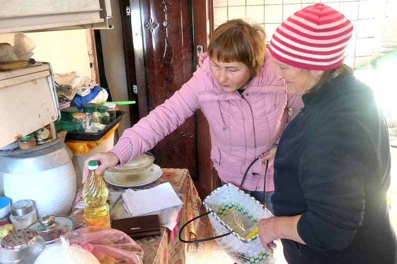 Соцпрацівниця Ольга Шкурат купує декілька буханок хліба, м’ясо, печиво, виноград і з повними сумками вирушає до своїх підопічних на північній околиці Ямполя. Жінка обслуговує вісім літніх людей, без її допомоги, говорить, вони залишились би без найнеобхіднішого.