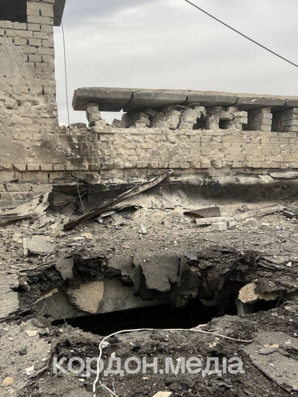 Через влучання з парапету будівлі впали бетонні плити, також обірвані супутникові тарілки та кондиціонери, вибиті вікна, — дізналися Кордон.Медіа на місці.