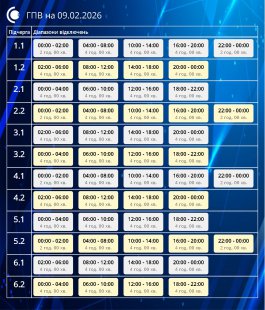 Завтра, 9 лютого, діятимуть графіки погодинних відключень відповідно до обсягів, доведених командою з НЕК “Укренерго”.