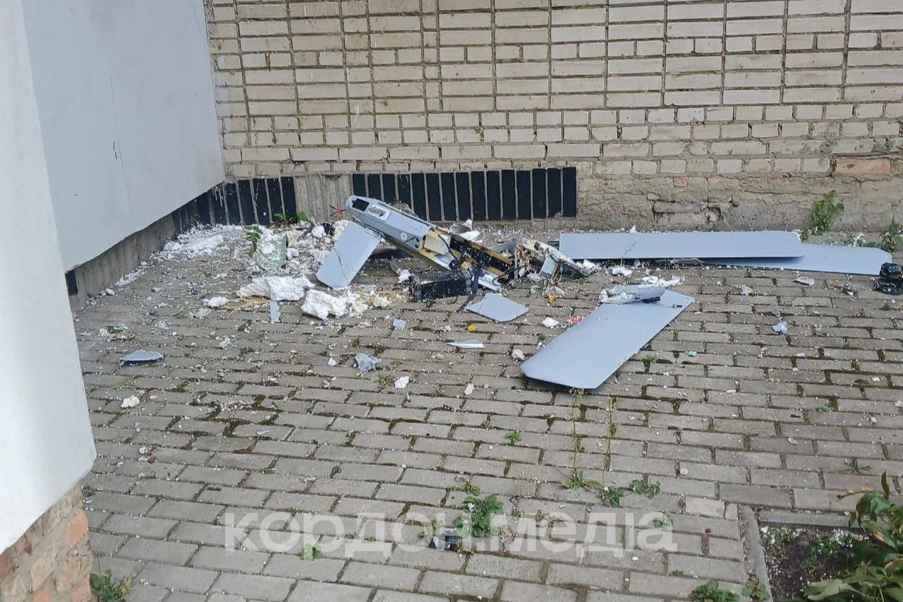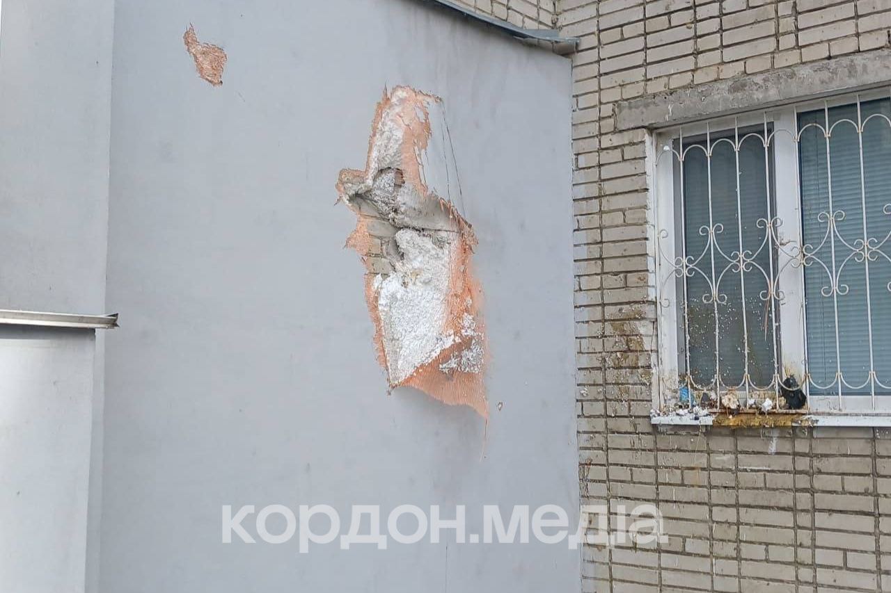 Сьогодні російський БпЛА влучив у фасад будинку в Сумах та не вибухнув, його уламки впали поруч. Унаслідок цього пошкоджене утеплення на одній зі стін, — дізналися Кордон.Медіа на місці влучання.