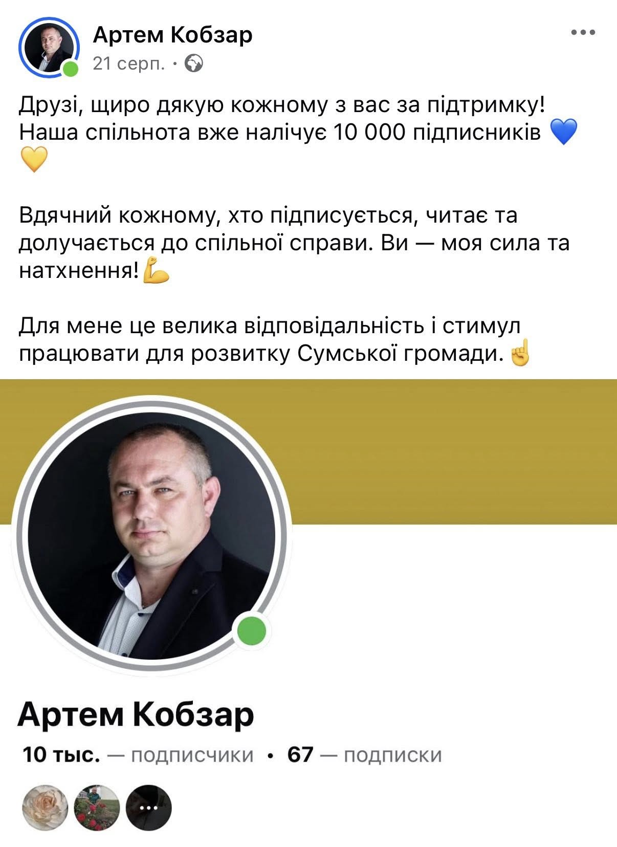 Він також нагадав історію з проєктом «Незламні Суми», коли за бюджетні 3,5 млн гривень було виготовлено та роздано футболки з патріотичним написом. За його словами, витрати на постійний піар Кобзаря — ще більші: понад 10 млн гривень розкидано по різних департаментах на ведення соцмереж, друковані матеріали, радіо та зарплати комунікаційних управлінь.