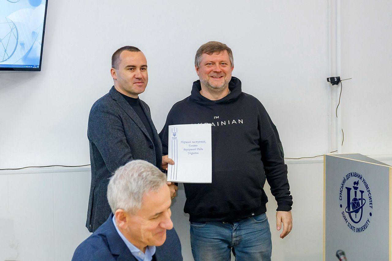 Голова Сумської обласної ради Олексій Романько продовжує активну роботу із залучення державної підтримки для розвитку освітнього та наукового потенціалу прикордонного регіону. Важливим кроком у консолідації зусиль стала зустріч із освітянами та науковцями області, яка відбулася в рамках робочого візиту на Сумщину Першого заступника Голови Верховної Ради України Олександра Корнієнка. До діалогу також долучилися народні депутати України та представники місцевої влади.