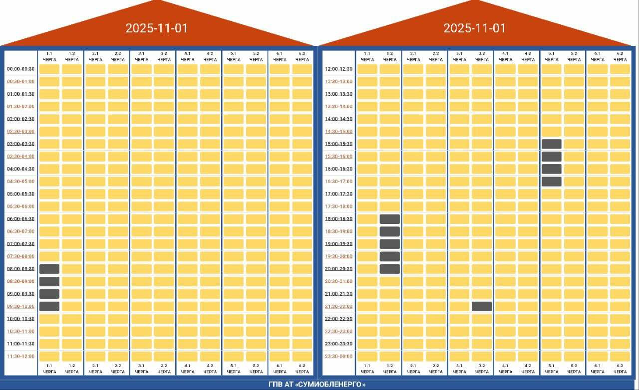 🔌 За даними АТ “Сумиобленерго”, графіки діятимуть у два проміжки: