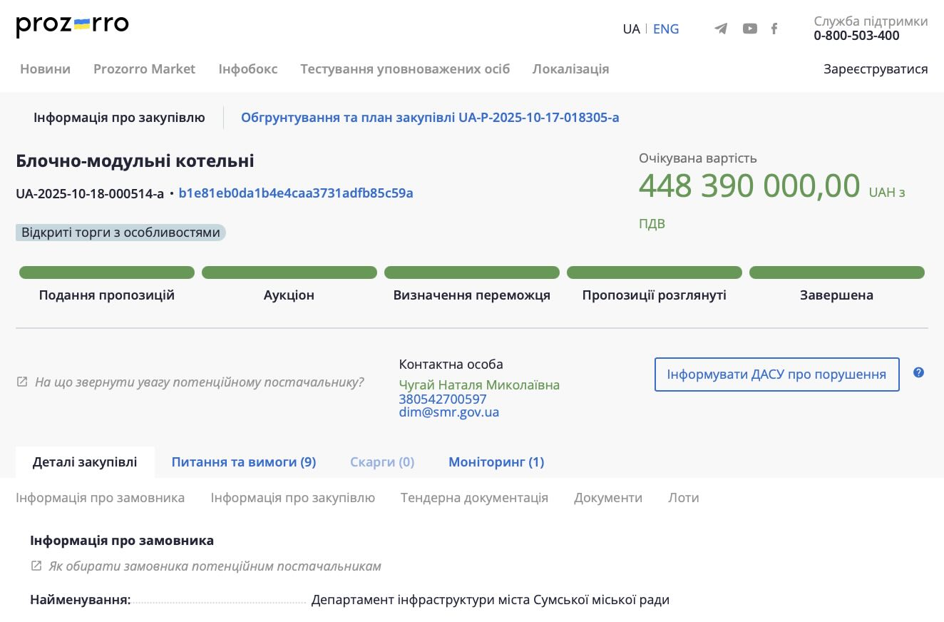 Ситуація виглядає як поганий анекдот. Сумська ТЕЦ під обстрілами вже понад рік. Минулу зиму ми дивом проскочили. Цю зиму експерти прогнозували як найважчу. І що робить Департамент інфраструктури? Правильно, оголошує тендер на закупівлю рятівних міні-котелень… у листопаді!